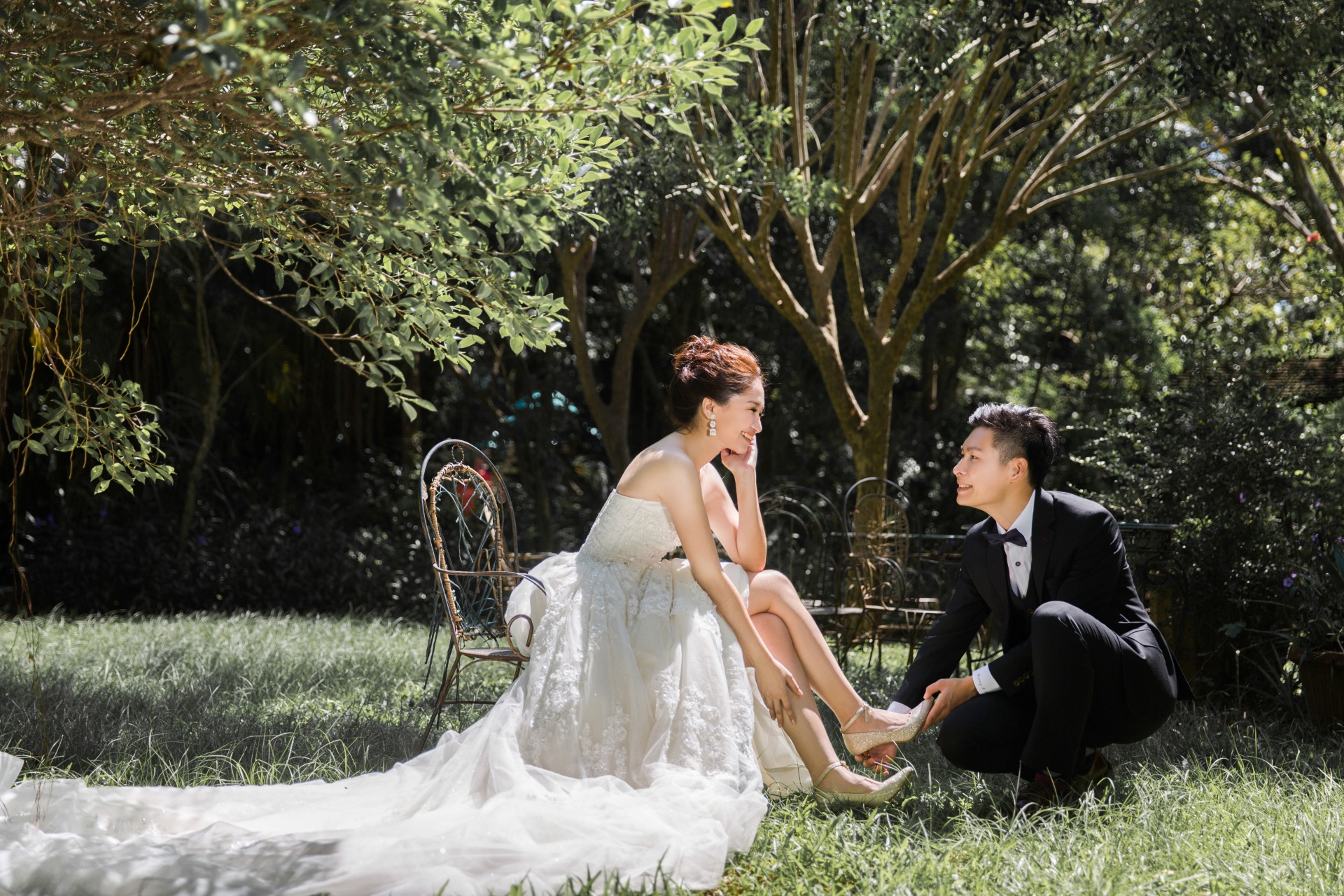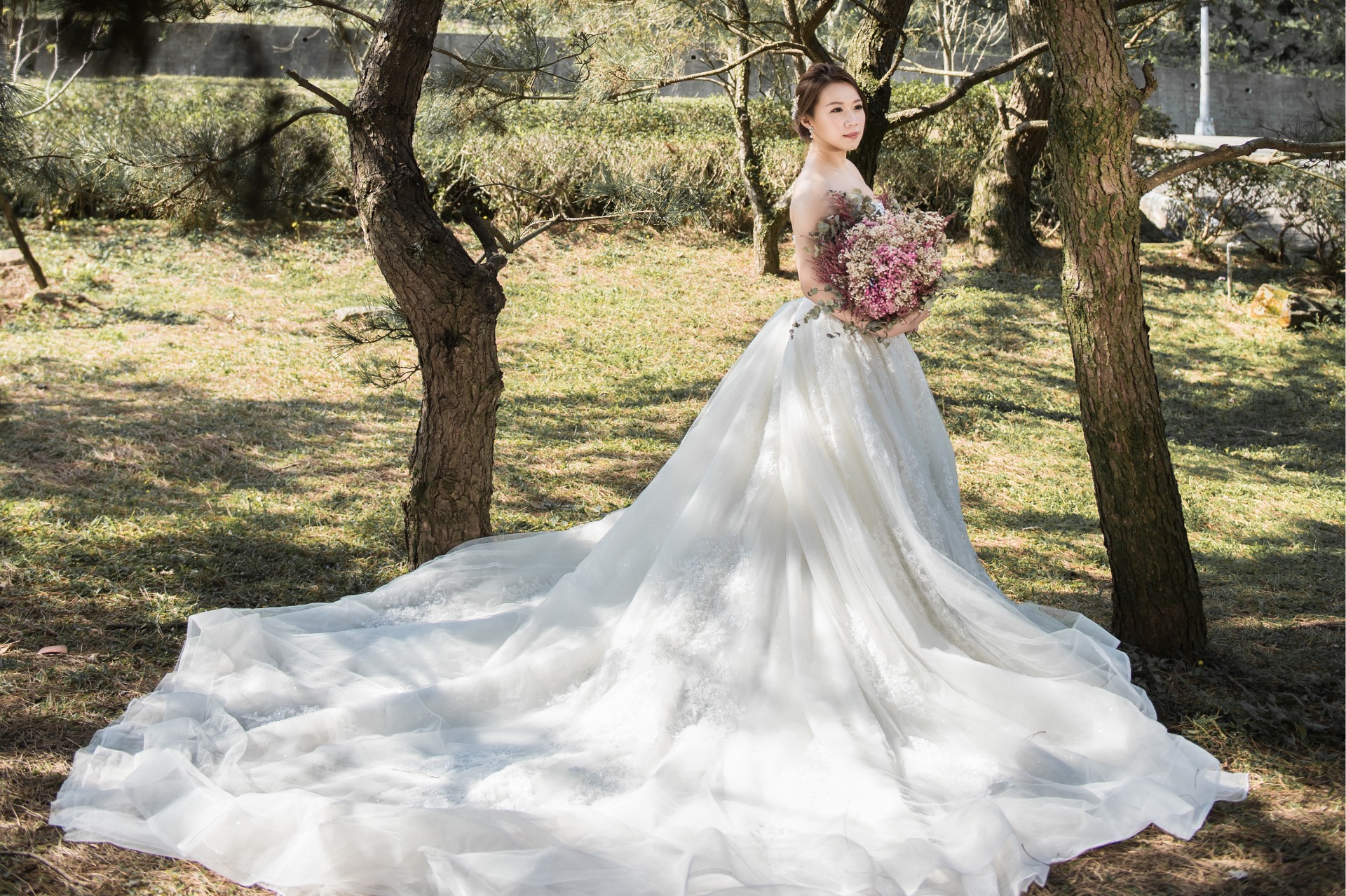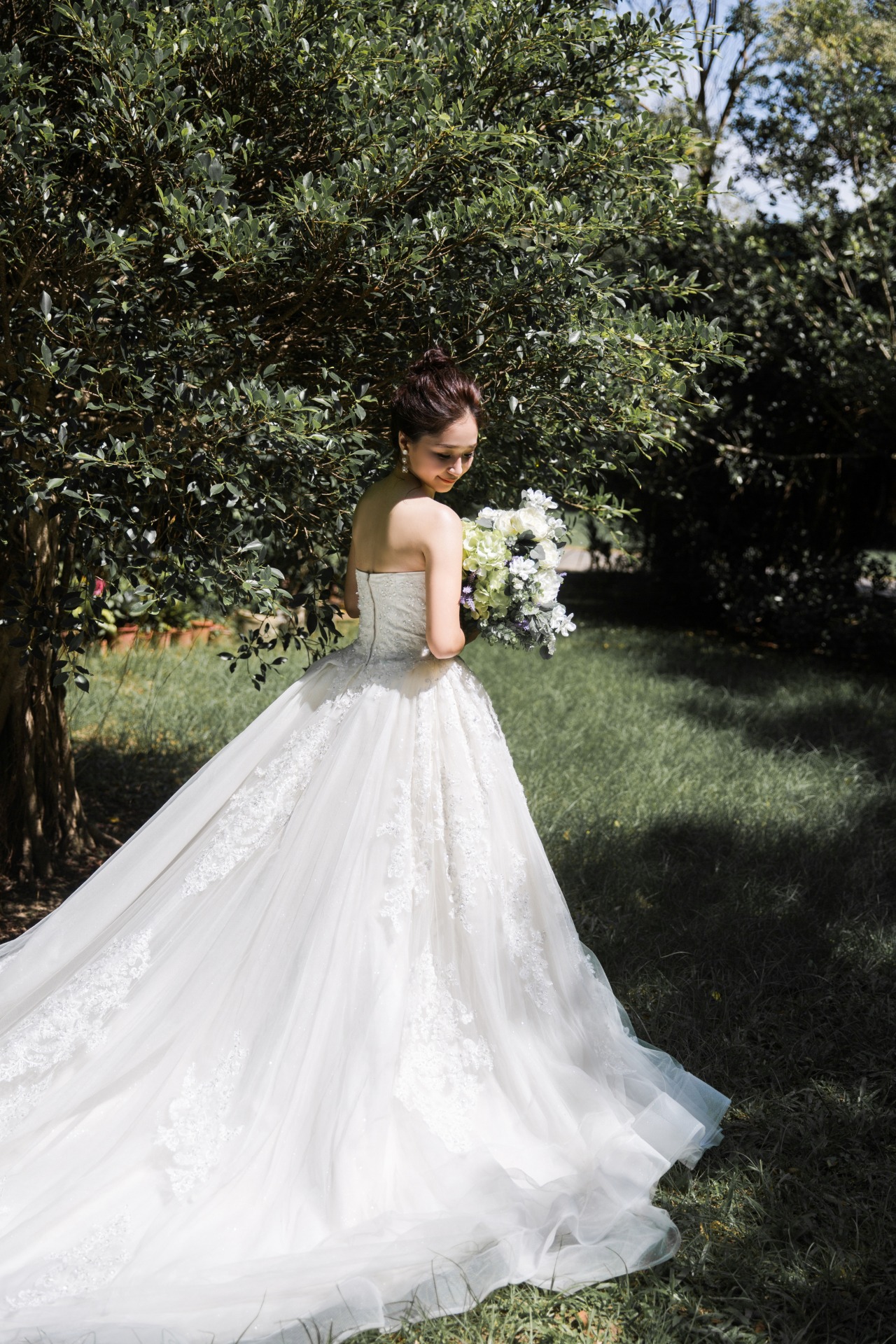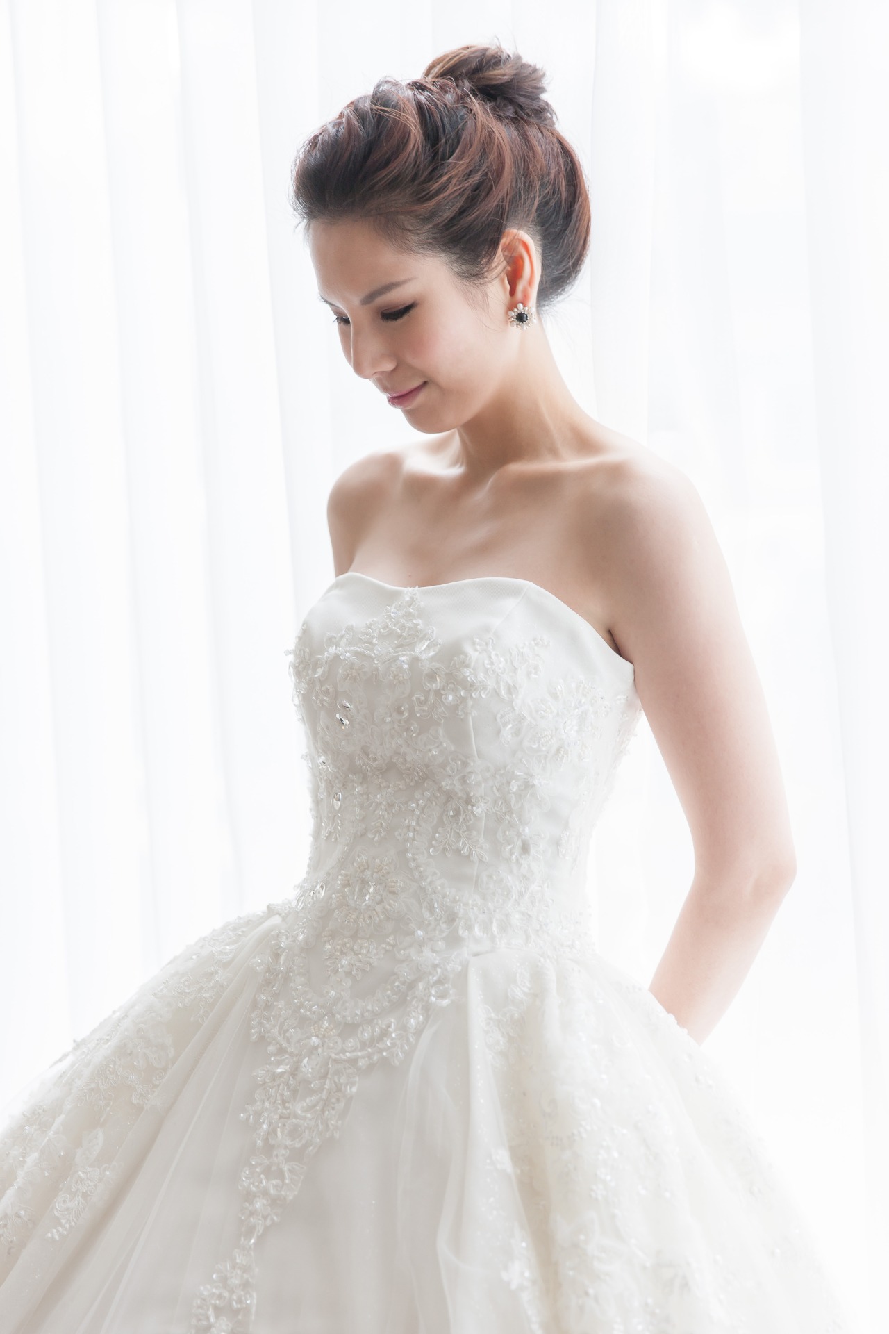 胸前滿滿的日本水晶珠,拼出宮廷式的圖騰,讓此款禮服豐富,卻不會落入俗套,