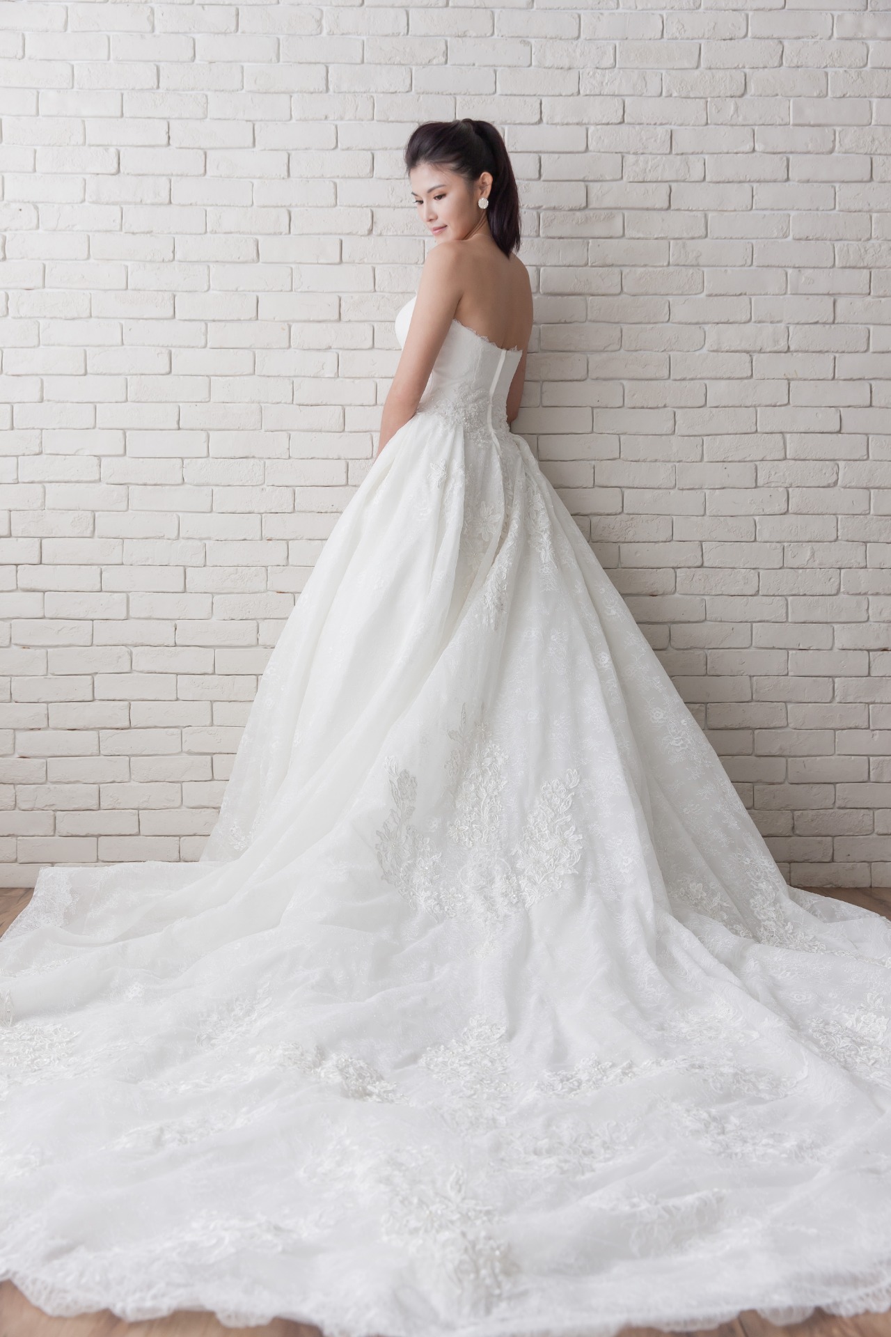 優雅不複雜,用著不同的精緻小珠,去做腰間的重點設計,更豐富了蕾絲的美